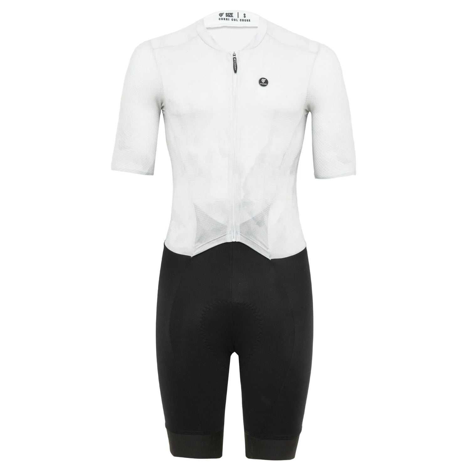 Der Body Pissei Magistrale UAE wurde für alle entwickelt, die maximale Geschwindigkeit, Aerodynamik und vollständige Integration zwischen Ober- und Unterteil suchen. Ein Einteiler, der die Performance des Magistrale-Trikots mit der Ergonomie der High-End-Hose vereint und für die anspruchsvollsten Wettbewerbe konzipiert ist.