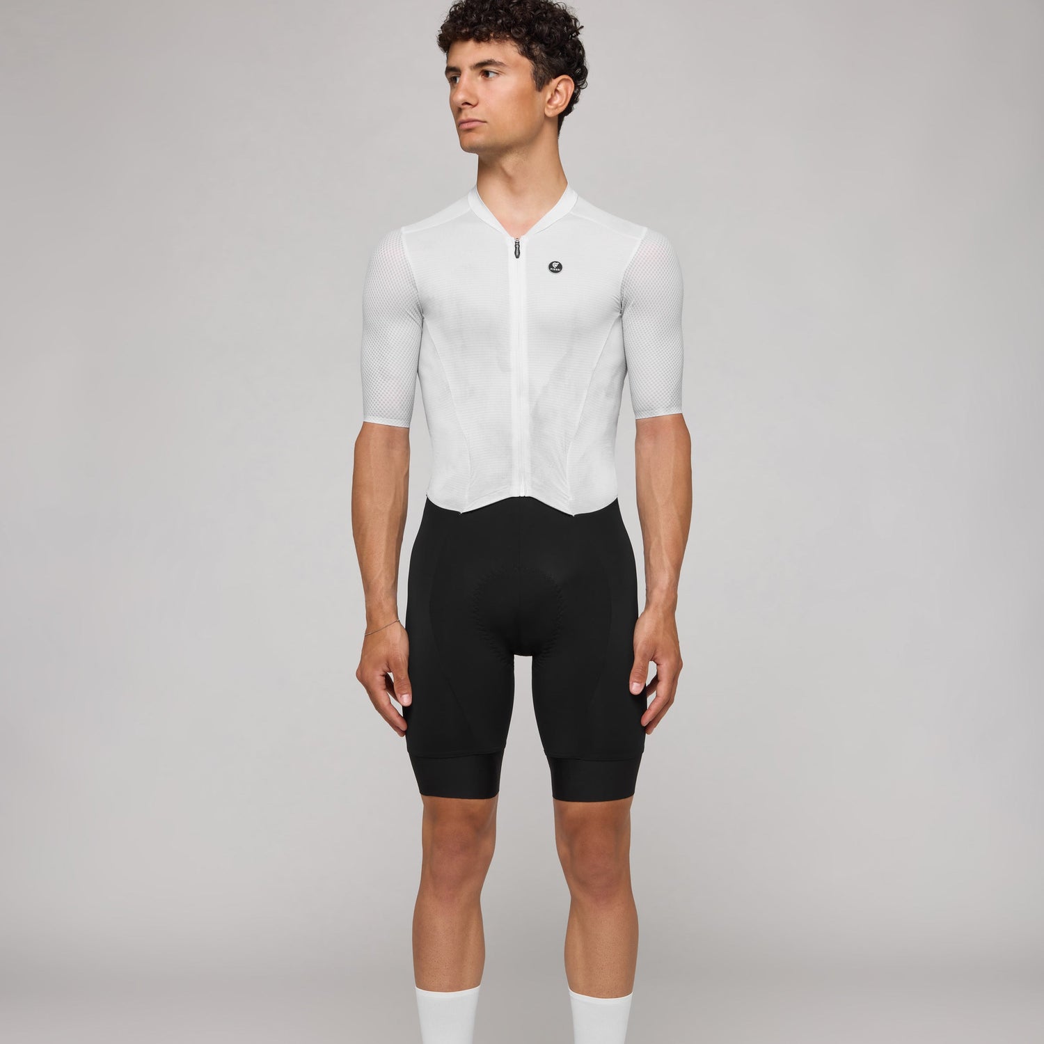 Das mikroperforierte Oberteil aus Gewebe ist darauf ausgelegt, die Luftströme zu optimieren und auch unter Belastung eine konstante Belüftung zu gewährleisten. Der ultratranspirante Mesh-Rücken unterstützt die Wärmeableitung, während die thermoverschweißten Aero Pro Ärmel perfekten Sitz und maximale aerodynamische Effizienz sichern.