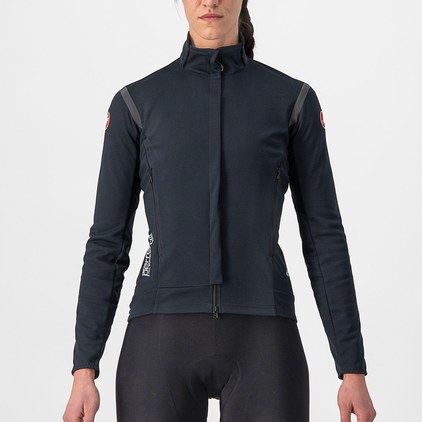 - Auf der Vorderseite: exklusiver Castelli GO-RE-TEX INFINIUMTM WINDSTOPPER® 205 Warmer, gebürsteter Stoff, wasserabweisend.