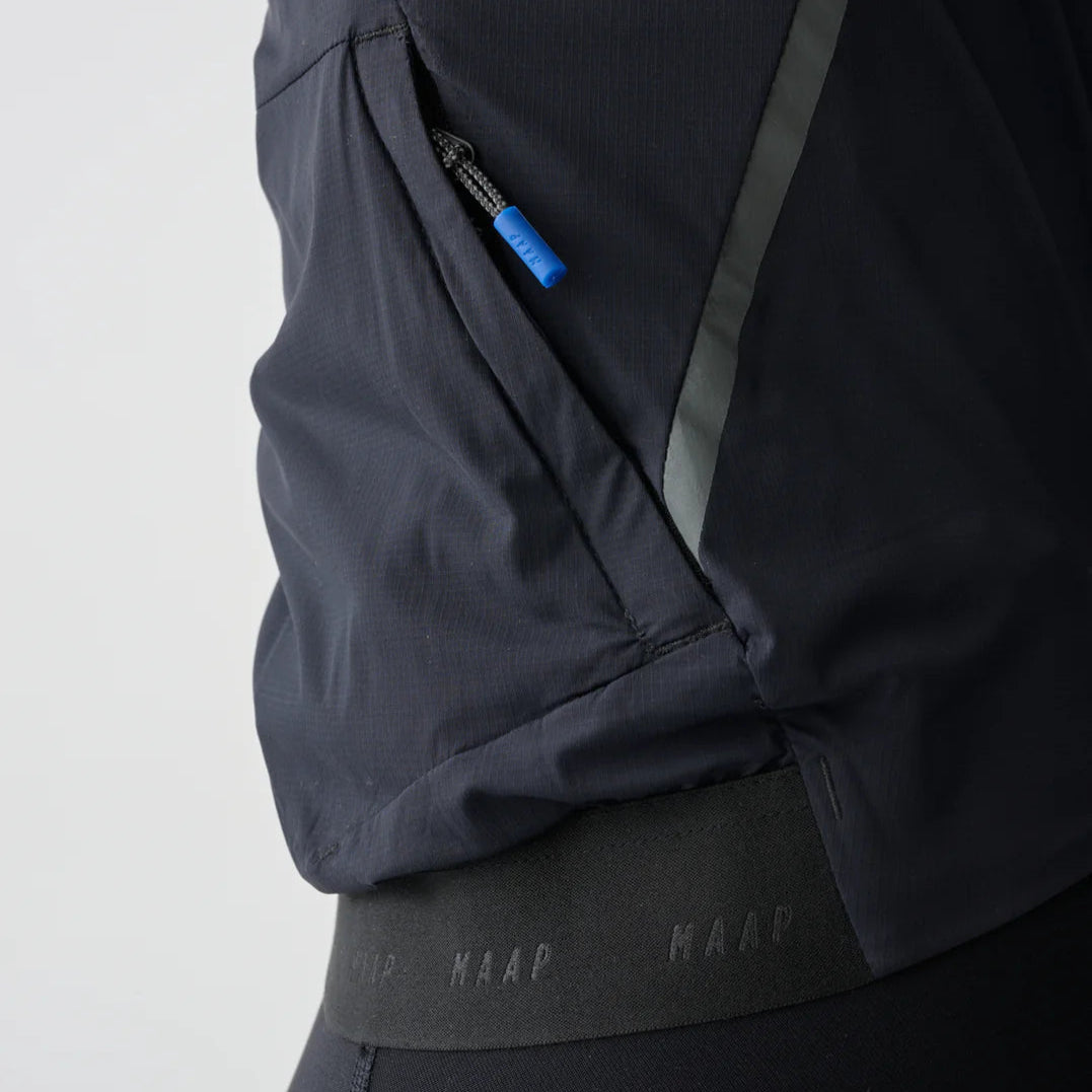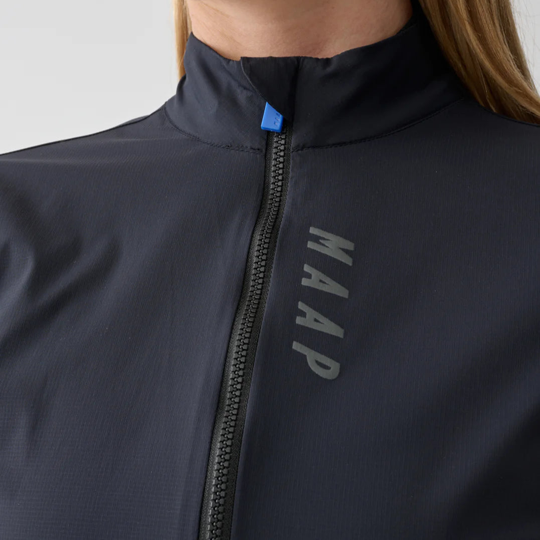 Die superleichte und winddichte Maap Flow frau jacke ist bereit für jede Herausforderung, wenn sich die Bedingungen ändern. Mit strategischen Paneelen zum Schutz und laserperforierter Belüftung zur Temperaturregulierung ist sie leicht verstaubar und einsatzbereit, wenn Gegenwind herrscht oder man bergab rast.