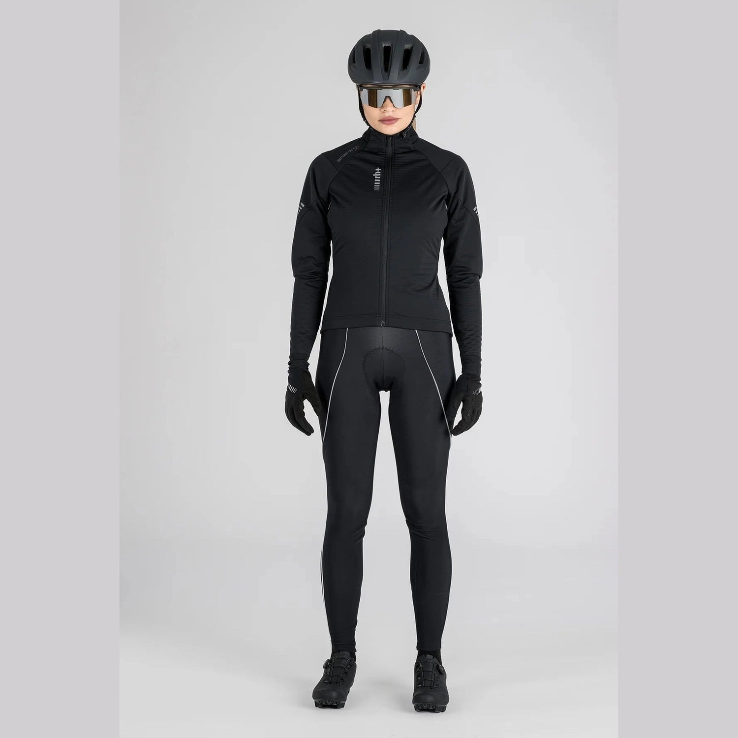 Rh+ Shark Softshell Damenjacke hergestellt aus einer neuen Generation Soft Shell, die das Biomorphic WR-Gewebe mit dem innovativen Biomorphic Air Channel kombiniert: Seine angeraute Struktur mit parallelen Kanälen ermöglicht die Schaffung eines optimalen Innenmikroklimas, das sich je nach Anstrengung und Atmungsaktivität des Radfahrers reguliert. Dies garantiert eine bisher nie dagewesene Thermoregulation in einer Winterjacke mit dem Plus des Schutzes vor Wind und Wasser, gewährleistet durch das Außenmaterial. Die beiden seitlichen Belüftungsreißverschlüsse ermöglichen eine bessere Feuchtigkeitsregulierung.