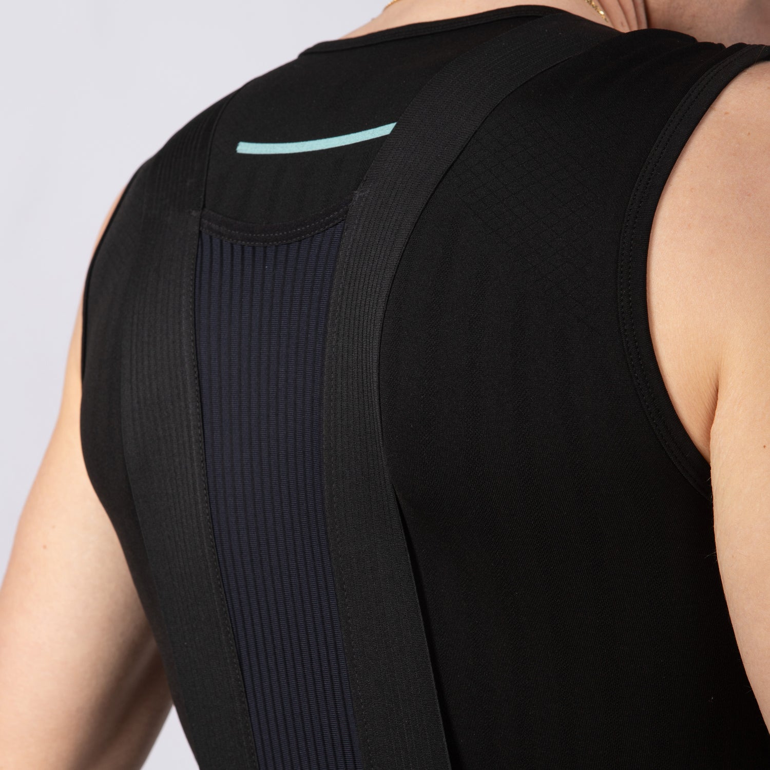 Im oberen Teil der Salopette ist ein doppelseitiger Stoff an der Taille montiert, dessen Außenseite aus Polyamid besteht, während das Innere aus Polyestergewebe besteht, was die Abfuhr von Schweiß erleichtert und einen hohen Komfort ohne Nähte bietet. Super elastische Träger mit extremem Komfort überbrücken einen Rücken mit atmungsaktivem Stoff mit vertikaler, elastischer und sehr offener Webart für einen super ergonomischen Effekt.
