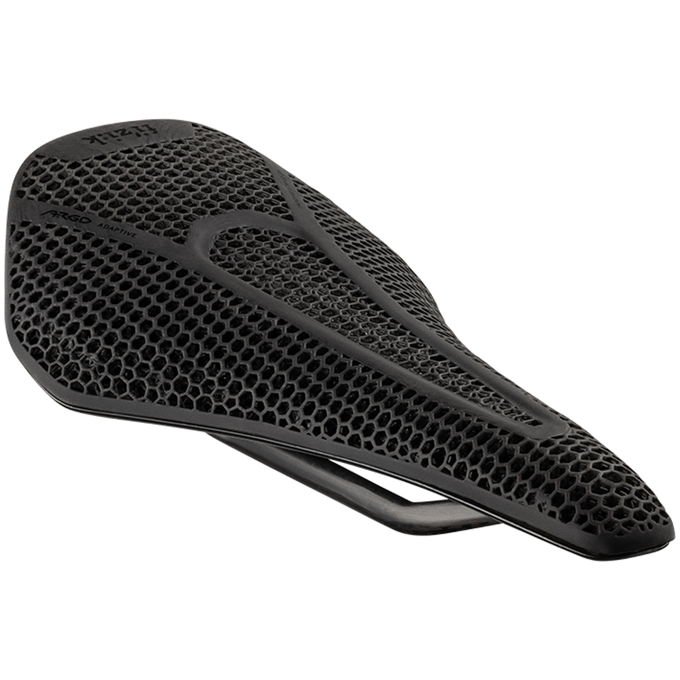 Fizik Vento Argo 00 Adaptive 140 mm Sattel, ein Vollcarbon-Hochleistungssattel mit kurzer Nase und revolutionärer 3D-gedruckter adaptiver Polsterung für perfekt konstruierte Zonendämpfung, verbesserten Komfort und erhöhte Stabilität.