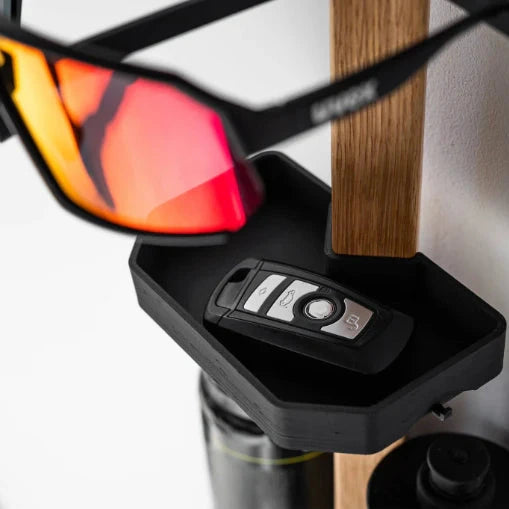 Halte immer deine Fahrradaccessoires griffbereit – mit dem GEAR-RACK von PARAX. Die hochwertige Eichenholzstange bringt endlich Ordnung in deine Accessoires. Dank der flexibel positionierbaren Halterungen kannst du Helm, Schlüssel, Fahrradbrille, Handschuhe und andere Accessoires genau dort aufhängen, wo du sie am meisten benötigst. So ist alles, was du für die nächste Fahrt brauchst, perfekt organisiert und griffbereit. Perfekt als praktischer Organizer im Flur, im Arbeitszimmer oder als Ergänzung zu deinem Wandfahrradhalter – das GEAR-RACK fügt sich dezent in jede Umgebung ein und bringt Struktur in deinen Alltag. Erhältlich in drei Konfigurationen und zwei Längen, kann es an deine Bedürfnisse und deinen Raum angepasst werden. Direkt von uns produziert, garantiert das GEAR-RACK höchste Qualität und ein durchdachtes Design bis ins kleinste Detail – ideal für alle, die ihre Fahrradaccessoires sicher und ordentlich aufbewahren möchten.