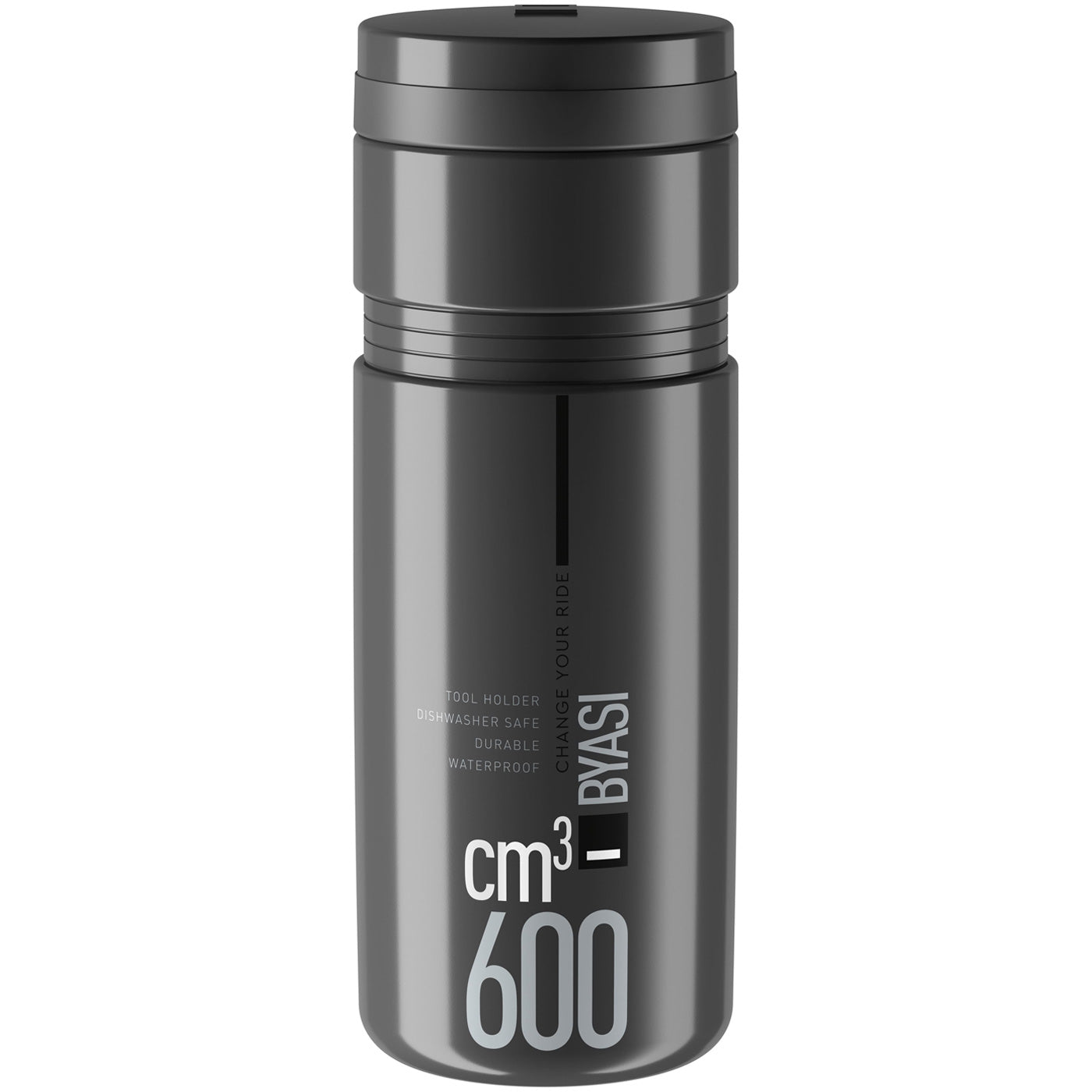 Tool Bottle Holder Elite Byasi 600 features design, materials, and characteristics exactly like a sports water bottle. Compact and sleek to fit every ride on road, gravel, and mountain bikes, Byasi ensures maximum protection for your items on the bike thanks to water- and rain-resistant material.