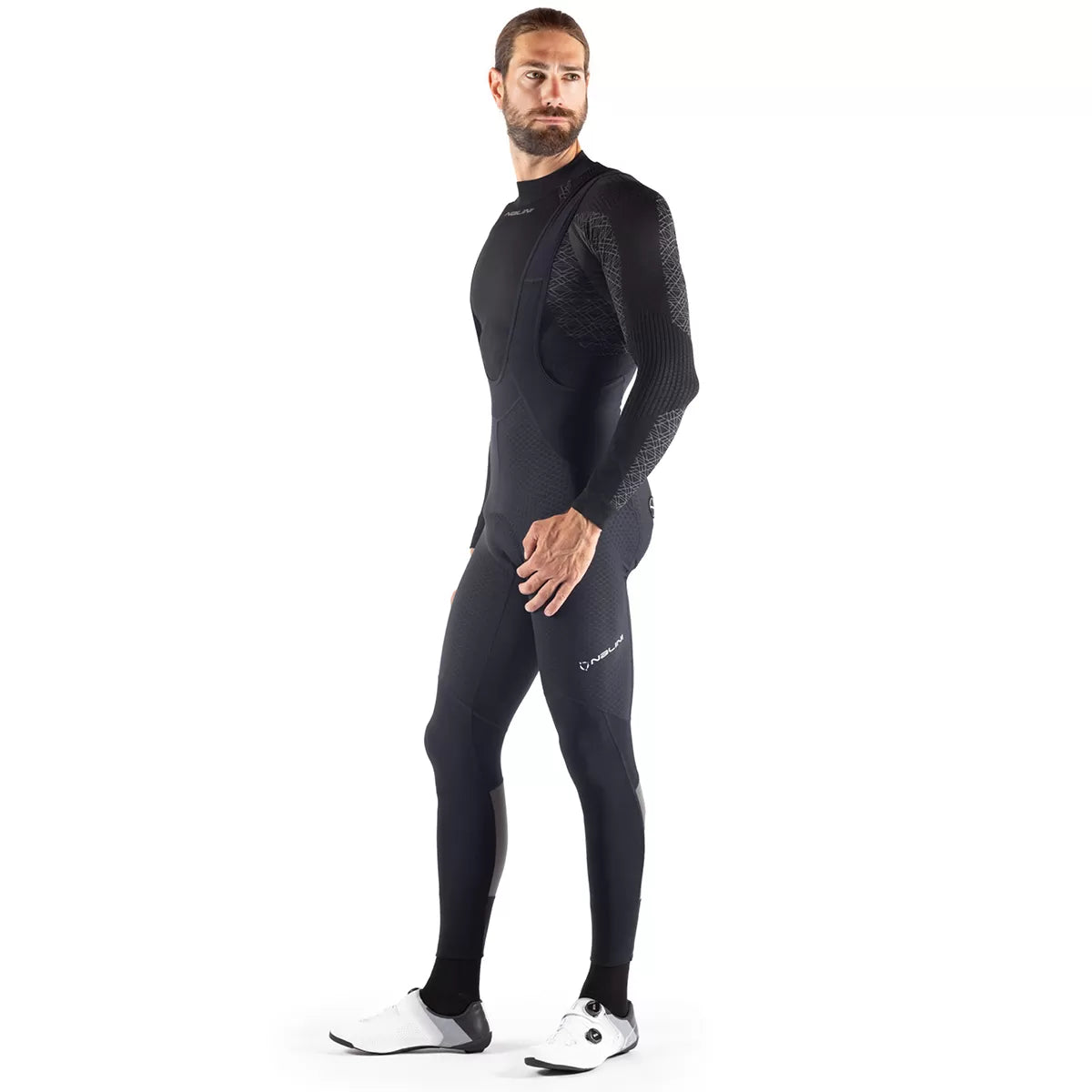 Nalini Adventures ergonomic tights in three-dimensional fabric that ensures thermal protection, comfort, and high visibility. The fabric has undergone a treatment that makes it water-repellent, making it particularly suitable for humid winter climates. Reflective inserts on the calves improve visibility on winter days. The overall features of the main fabric are enhanced and enriched by the hexagonal pattern, which differentiates the garment from others on the market. The tights are fully assembled with flat seams and feature a top-of-the-line chamois, heat-shaped with sponges of different densities and thicknesses.