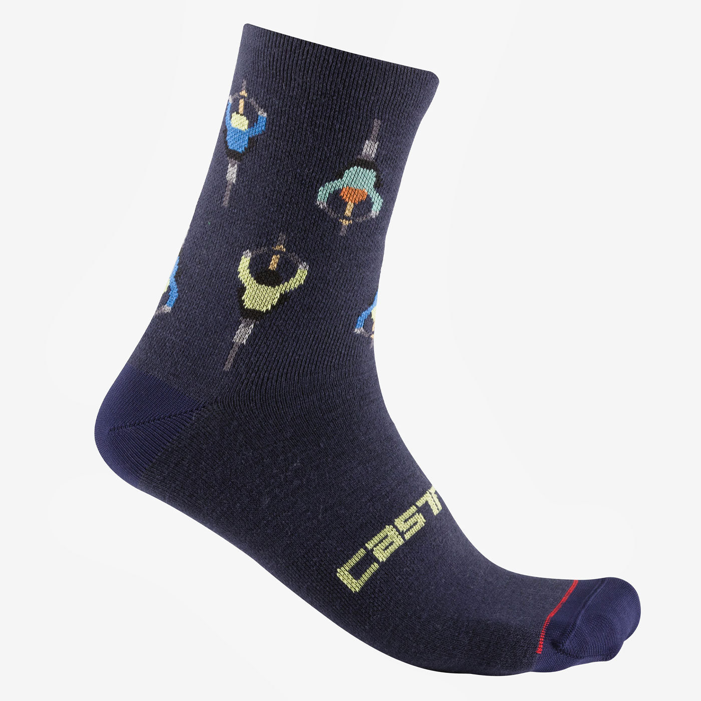 Castelli Aperitivo 15 socks are made from a blend of fabrics and merino wool. Rough fabric on the sole for extra cushioning and warmth.