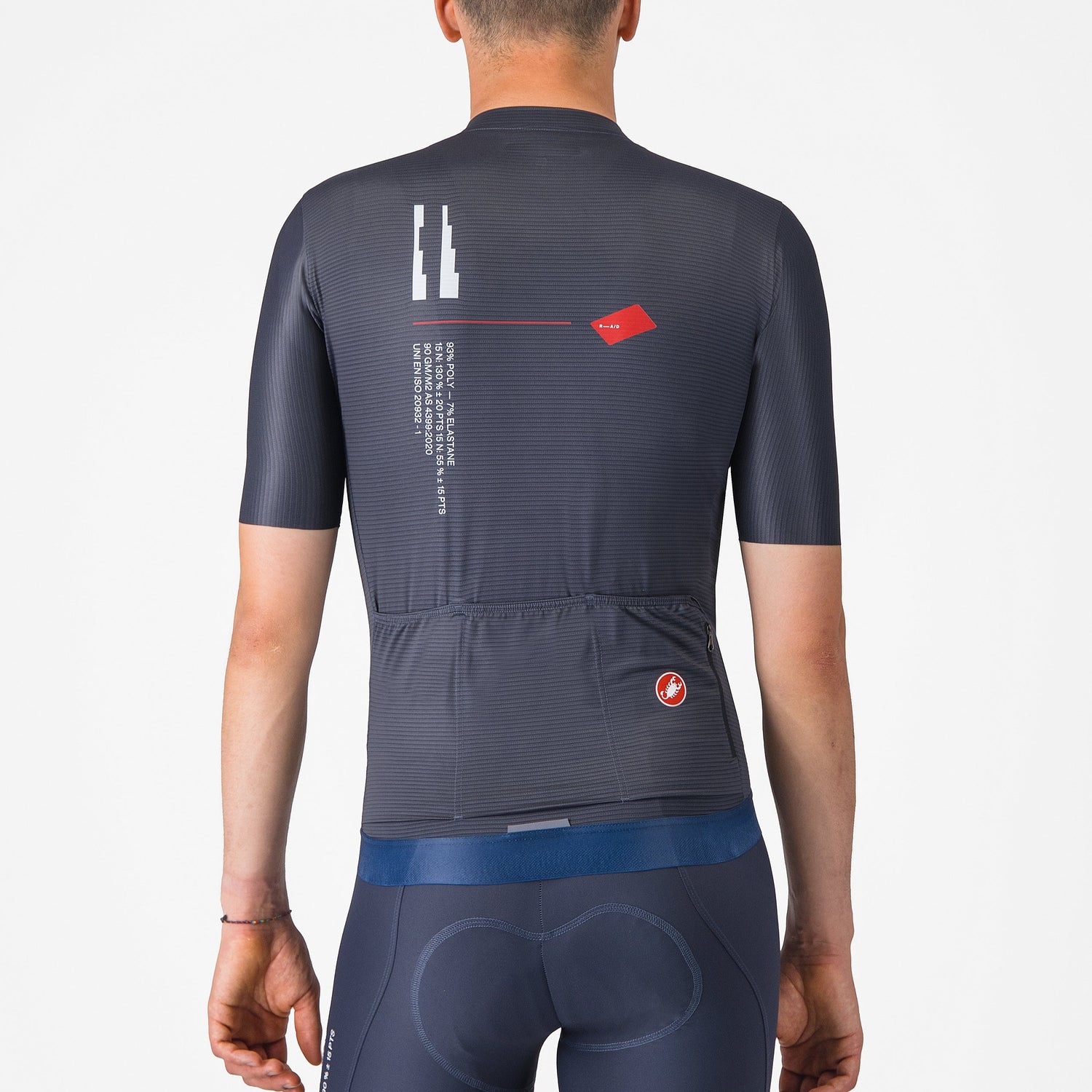 - Air_O Stretch fabric designed by Castelli to provide breathability, comfort, and a perfect fit.