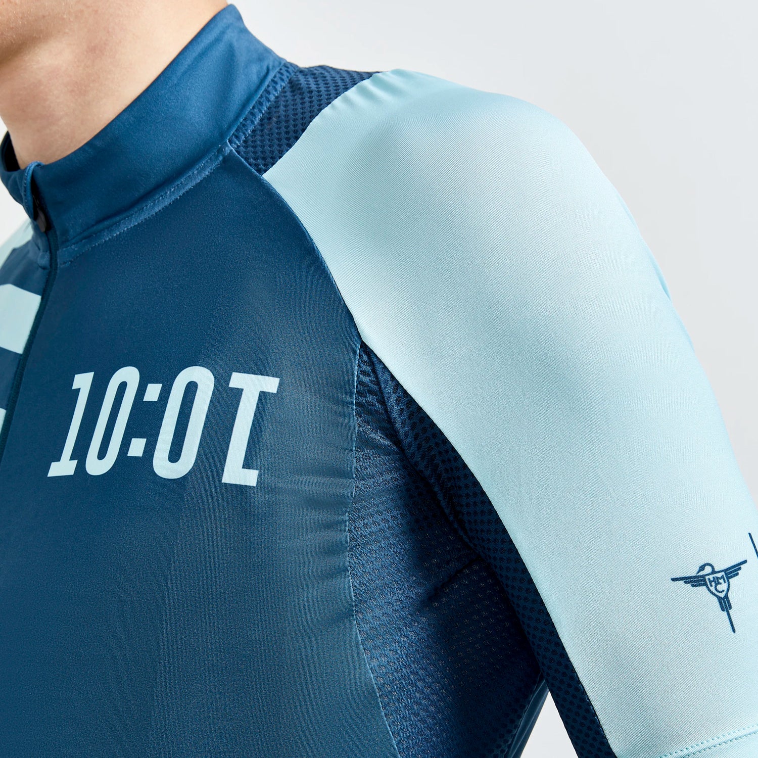- Mesh panel at the top of the back, inside the sleeves and on the sides.