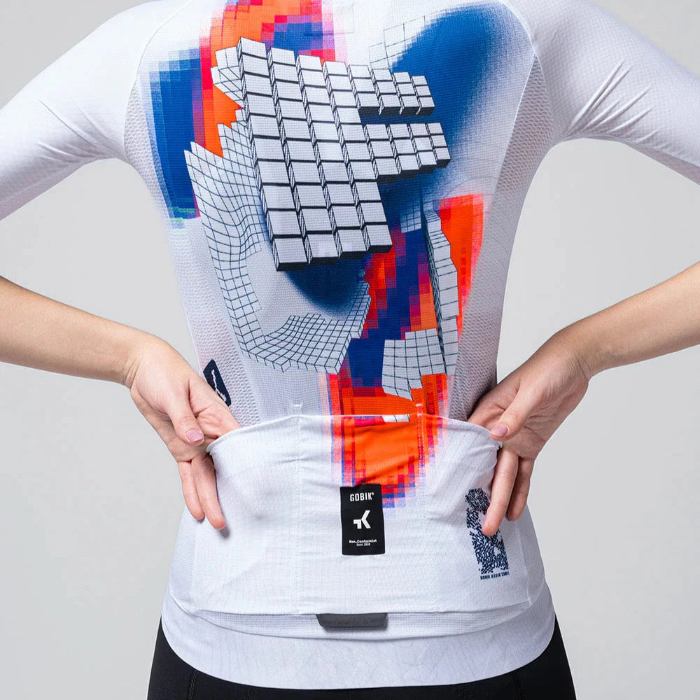 Gobik Factory Team 2025 Cx Pro 4.0 jersey, an evolution of Gobik's best-selling jersey, with improved design and comfort. The front uses the same micro-perforated fabric as the back, ensuring greater breathability. The newly optimized sleeve length guarantees perfect stability in every movement. The side panels made of AIRLIGHT open mesh fabric have been retained, providing active ventilation as fast and demanding movements occur. Perfect stability and fit at the waist, with an extended and very flexible elastic band.