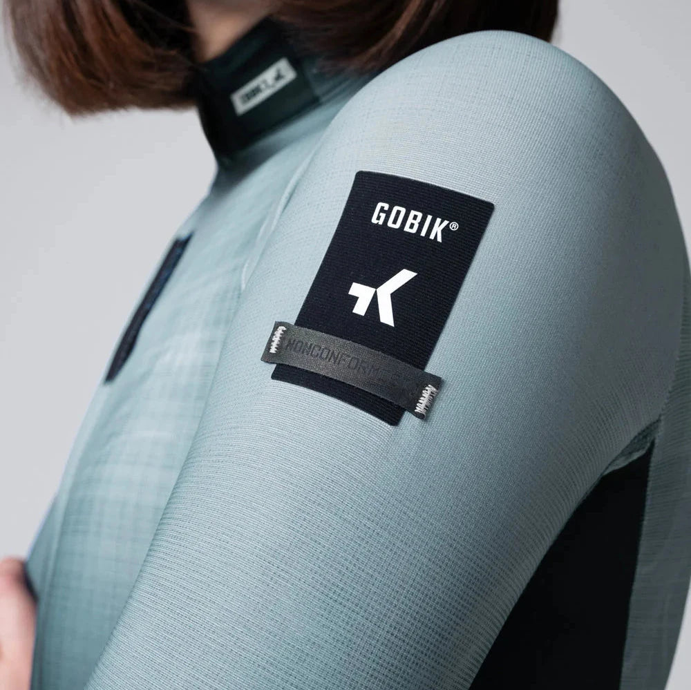 The women's long sleeve jersey Gobik Hyder Willow is made from a technical fabric with microfleece that retains body heat. It fits our body optimally, enhancing aerodynamics, but with enough space to use a base layer if the temperature requires it. The mesh panels under the armpits provide increased ventilation, helping to remove residual heat. The lightweight and flexible sleeves with laser-cut cuffs reduce wind resistance and easily fit inside a jacket.