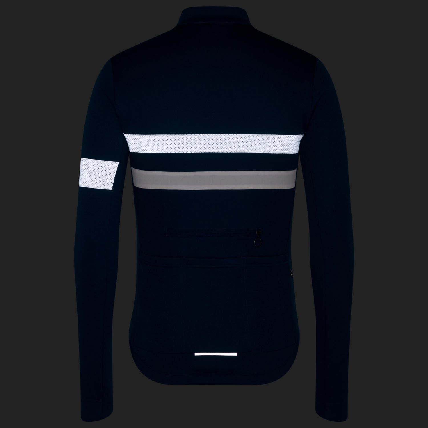 The Rapha Brevet long-sleeved cycling jersey is designed specifically for riding in low-light conditions, containing 2 high-visibility stripes around the chest.