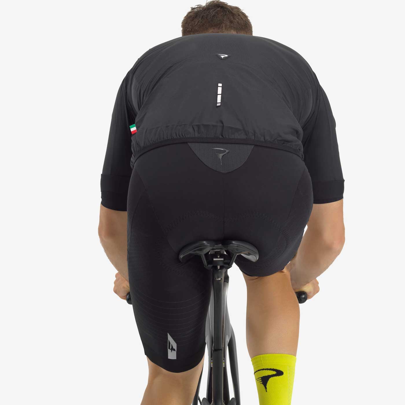 - Highly technical Japanese fabric capable of protecting from the wind but without losing elasticity.