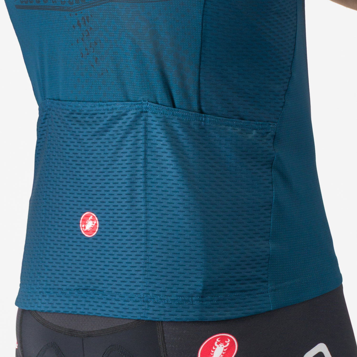 - Recycled Sitip fabrics for custom fabrics Castelli, combined with Velo Light and 3D mesh fabric on the sleeves, optimizing breathability and lightness to maximize performance without compromising protection.