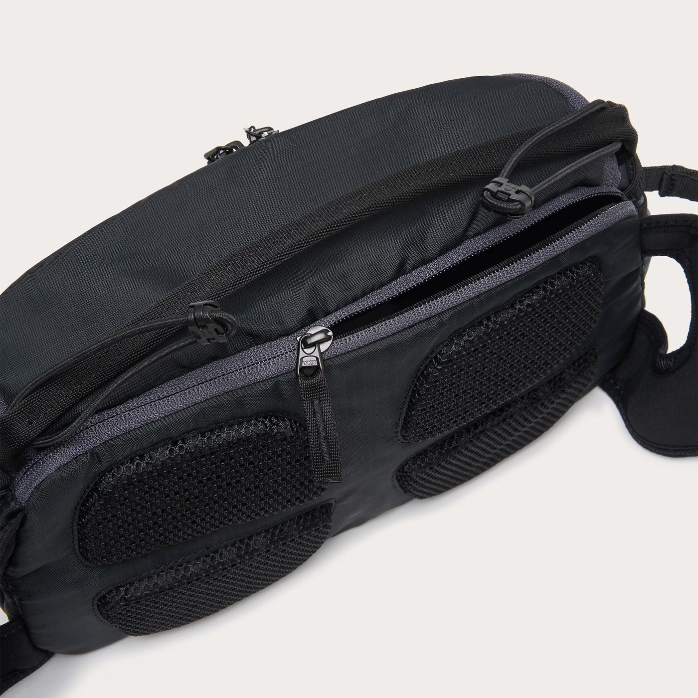 - Belt system with two zippered power mesh pockets.