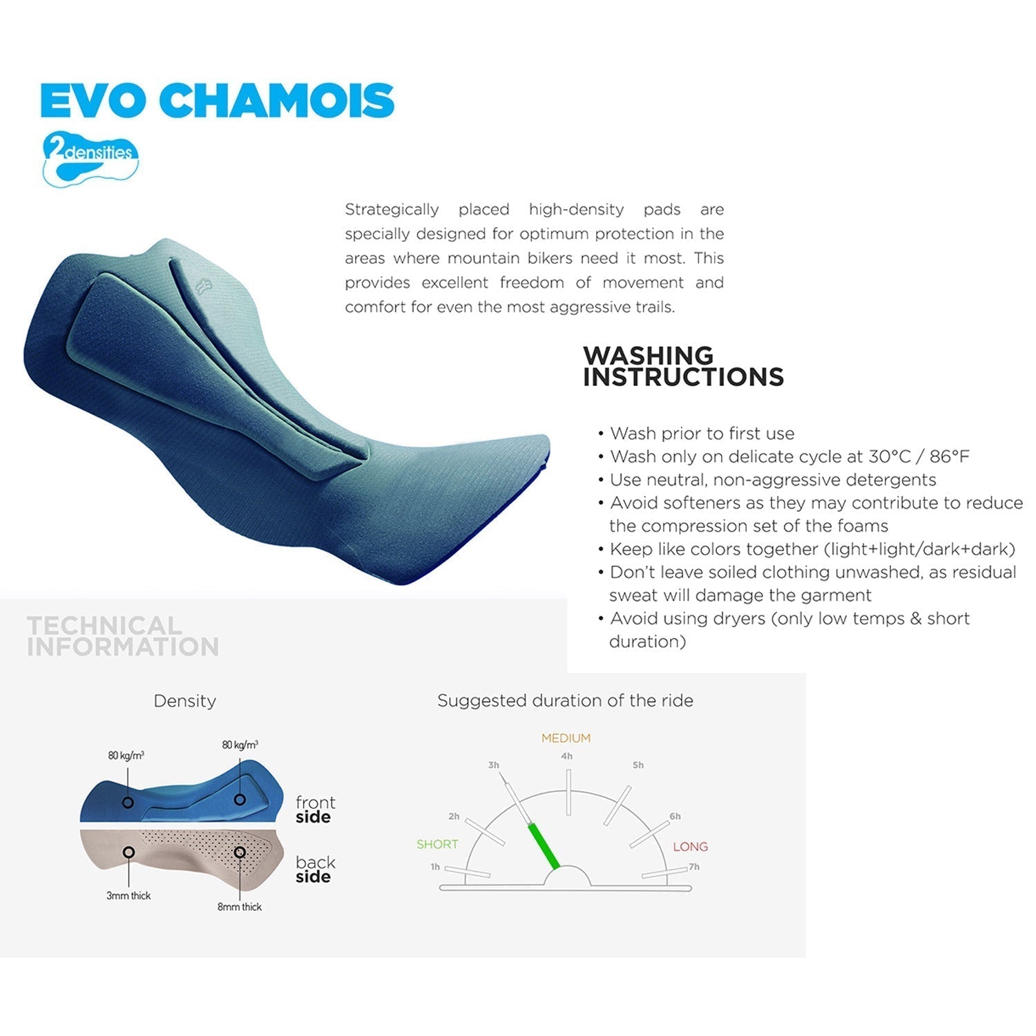 - Removable lining with dual-density pad that enhances comfort in the saddle