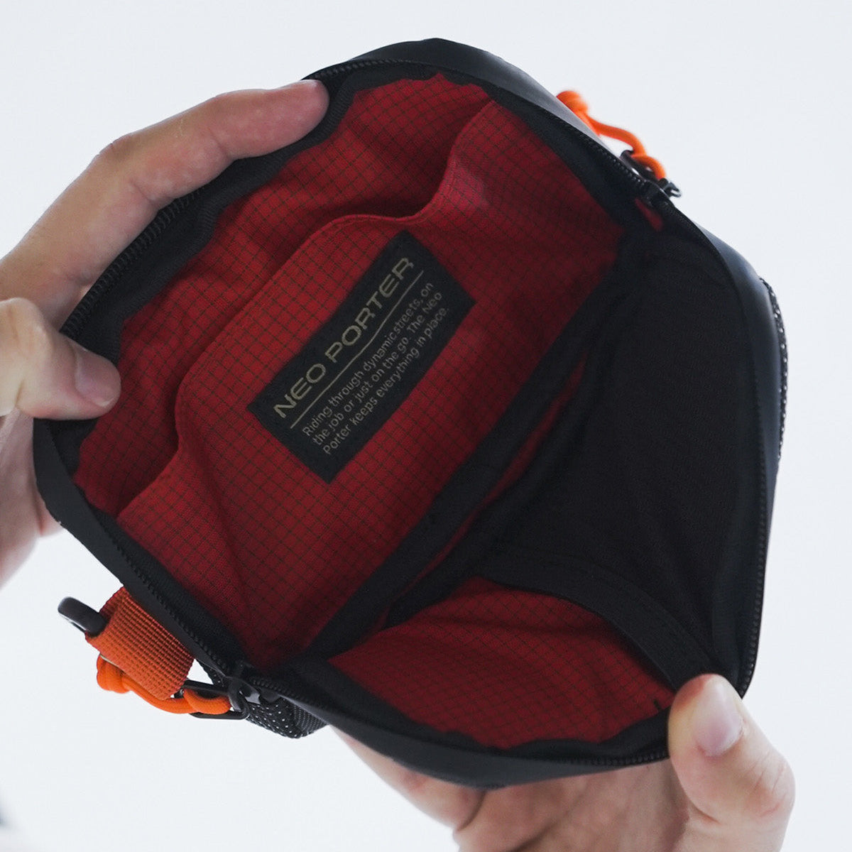 - Main fabric: waterproof nylon and polyester.