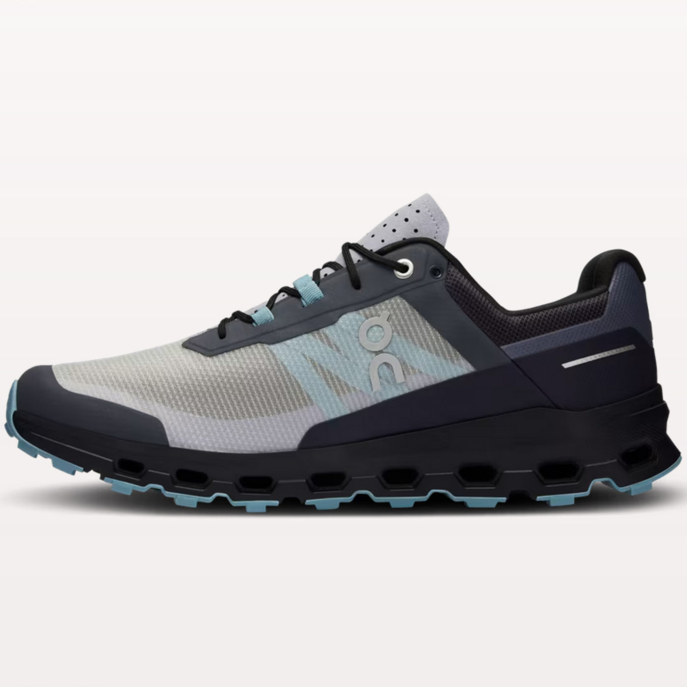 The lightweight and versatile On Cloudvista trail shoe that ensures comfort and cushioning. The key to unlocking new paths. Change your vision of trail running. Ultra-light and versatile, the Cloudvista combines Helion ™ superfoam with CloudTec® elements for unsurpassed comfort. Plus, the trusty Missiongrip ™ makes it the perfect shoe for any trail runner over medium and short distances. One of the lightest shoes in our trail collection; the upper of the Cloudvista offers an excellent fit and agility focused on comfort. With over 70% recycled polyester, a perforated tongue and TPU protection, it's designed for the trails but has a universal style. The Cloudvista meets the needs of every trail runner. Born to run through forests and clearings or along the lakefront, it is designed in Switzerland to offer a smooth ride on the toughest trails. Versatile, agile and comfortable, it is the ideal shoe to fully experience nature.