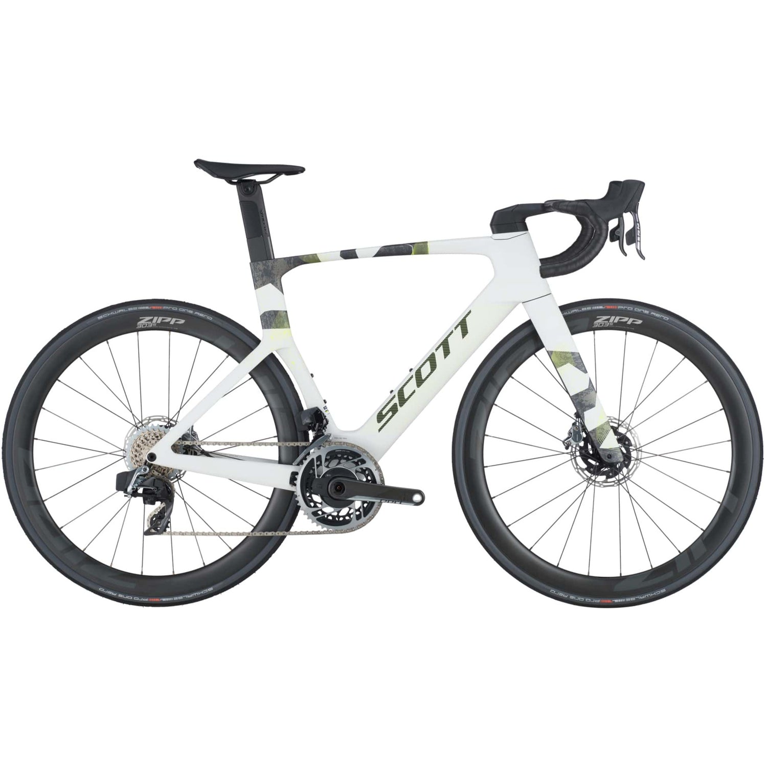 - Front tire: Schwalbe PRO ONE Aero TL-Easy Fold 700x28C.