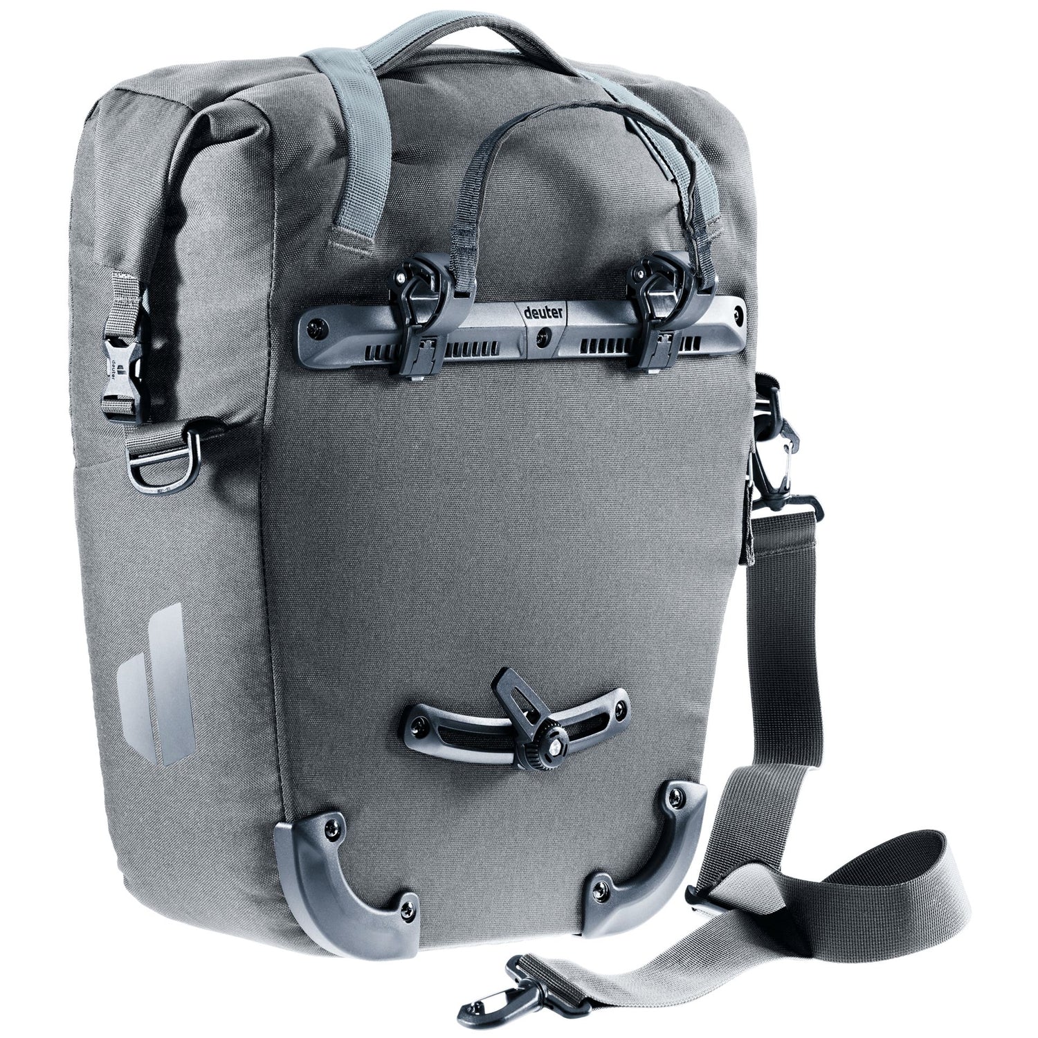 The Deuter Valbona 20+5 backpack is a practical backpack that easily attacks a bike luggage rack via the Bagfix quick release system. A roller closure offers easy access and an extra 5 -liter space if necessary. The side pockets with zip and an integrated unit guarantee a lot of space for a change of clothes and the laptop. And if you stop for a tourist visit, the bag can be brought with the removable shoulder strap or the handle, while the reinforced corners will protect it when the Poggi on the ground.