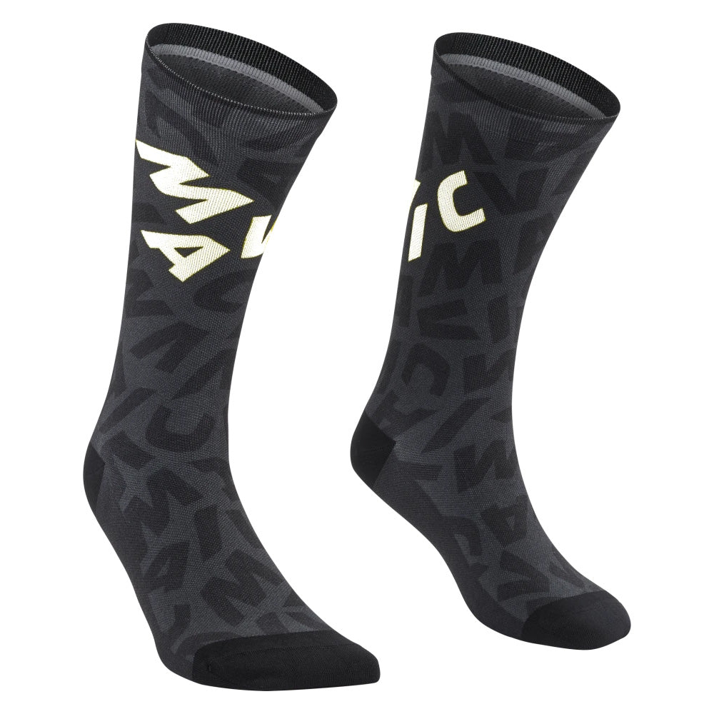 El calcetín Mavic Aksium Graphic es un calcetín de ciclismo ligero y de corte alto con un atractivo estampado gráfico.