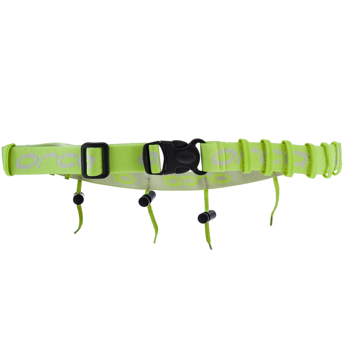 Orca Racebelt viene con cordones para mantener su número de carrera y cualquier gel en su lugar, asegurándolos horizontalmente, para evitar que reboten o se pierdan. Con la correa central ajustable, se ajusta perfectamente a cualquier talla de cintura. Un accesorio imprescindible para todo triatleta.