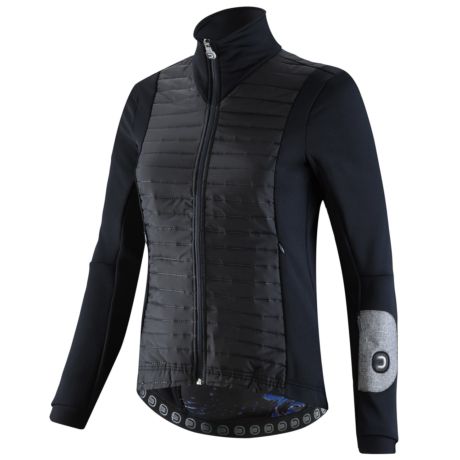 - Parte inferior de la chaqueta con elástico antideslizante personalizado para la perfecta adherencia y rigidez de los pantalones. Inserciones en mangas compactas de lana merino Dot Wool.