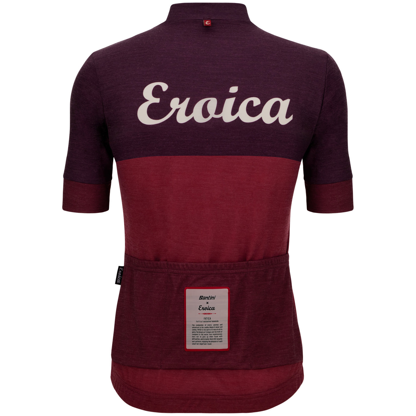 El maillot Eroica Luce está confeccionado en moderna lana (mezcla de merino y poliamida) y cuenta con una larga cremallera oculta y un triple bolsillo trasero. Ideal para entrenar en cualquier lugar, ¡este maillot es la combinación perfecta de tecnología moderna y estilo de la vieja escuela!