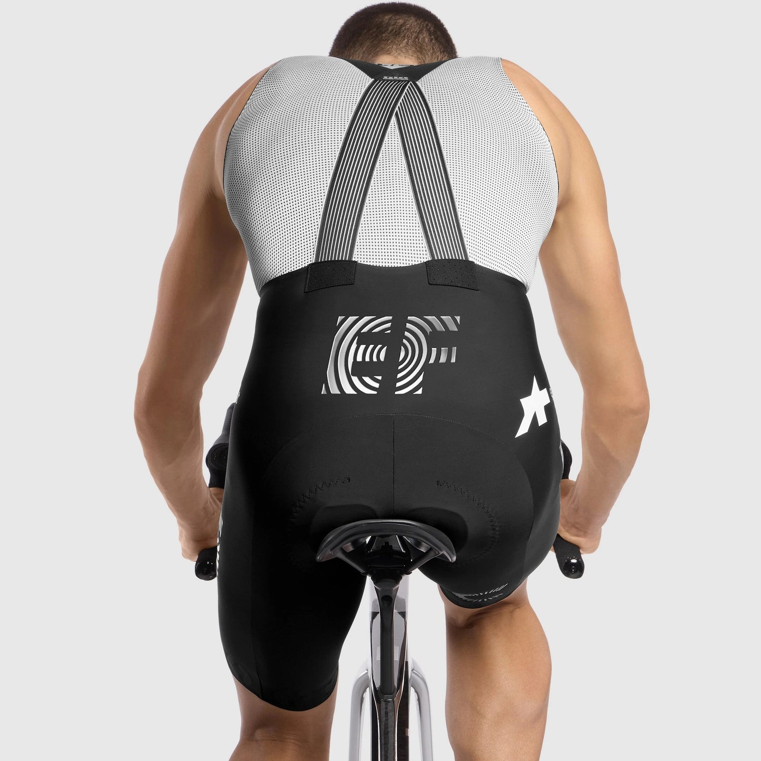 Culotte Assos EF Education EasyPost 2026 Equipe RS S11 del equipo EF Pro Cycling, oficialmente denominado WE RIDE IN PEACE, se inspira en los trajes usados durante los primeros vuelos espaciales. Y aunque las costuras plateadas y los detalles numéricos evocan escenarios extraterrestres, el modelo RS S11 en el que están integrados ofrece un rendimiento a la altura de cualquier desafío terrestre. El kit 2026 del equipo EF Pro Cycling, oficialmente denominado WE RIDE IN PEACE, se inspira en los trajes usados durante los primeros vuelos espaciales. Y aunque las costuras plateadas y los detalles numéricos evocan escenarios extraterrestres, el modelo RS S11 en el que están integrados ofrece un rendimiento a la altura de cualquier desafío terrestre. El modelo RS S11 integra la tecnología premium de los RS SCHTRADIVARI Bib Shorts S11 en una estructura más esencial. Esta tecnología compartida incluye puños con corte vivo, agarre de silicona minimalista y el tejido Type.911, ligero y compresivo. Las principales diferencias respecto a los modelos RS y R son la badana RS S11 y los tirantes, que han sido simplificados para garantizar la máxima funcionalidad en competición.