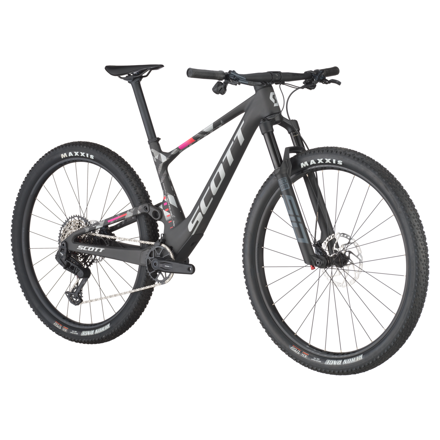 - Cuadro: Spark RC Carbon HMF Integrated Suspension Technology Flex Pivot / Ángulo de dirección ajustable Syncros Cable Integration System BB92 / Interfaz UDH / 12x148mm con 55mm de línea de cadena.