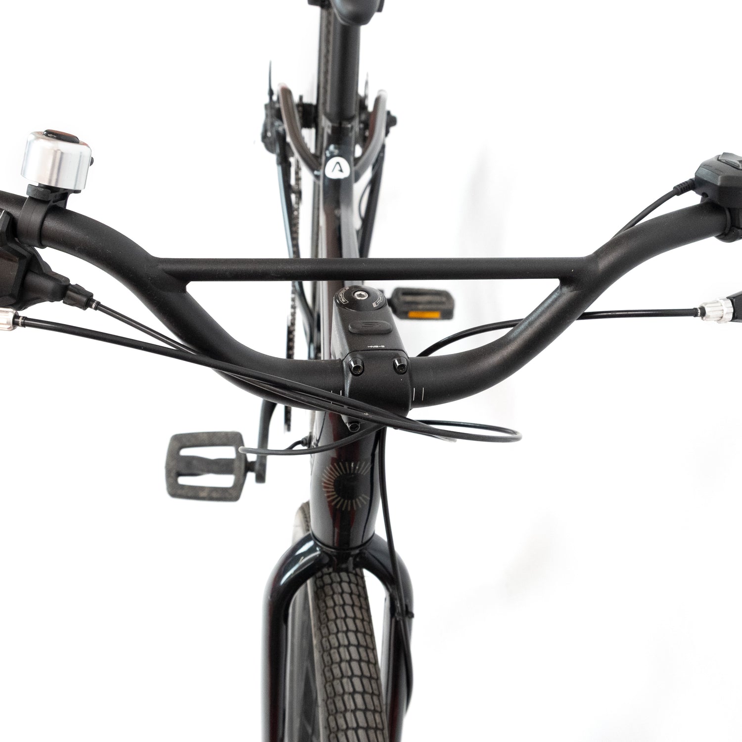 - Guidon : Cannondale Cruise Control riser, alliage 6061, pince 31.8mm, recul de 15 degrés, largeur 740 mm.