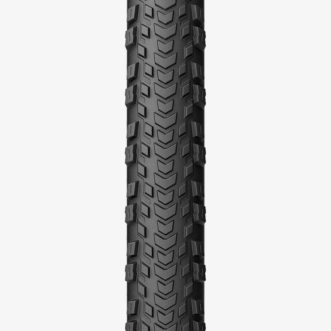 Le pneu Pirelli Cinturato Gravel RC X s'appuie sur le succès du Cinturato Gravel RC, le premier pneu spécialement conçu pour les courses sur gravier, en développant une version encore plus renforcée. Ce modèle est équipé du nouveau Techwall X Gravel, une structure de carcasse avec un tissu de 60 tpi étendu au-delà de la ligne de la bande de roulement, avec une couche de protection supplémentaire d'un talon à l'autre. Conservant la bande de roulement caractéristique de nos modèles RC, le Cinturato Gravel RC X est conçu pour les courses sur gravier sur les surfaces les plus difficiles. Formule spécifique aux courses sur gravier, née de l'expérience de Pirelli dans le monde du rallye où les caractéristiques de douceur sur l'asphalte et d'adhérence sur le gravier sont cruciales. Ce composé utilise la même matrice polymère que le composé MTB SmartGrip, mais en améliore la fluidité. Les ingénieurs de Pirelli ont donc orienté les propriétés du composé vers une meilleure efficacité énergétique, ce qui permet d'obtenir d'excellentes performances sur le gravier et une adhérence élevée sur sol sec et mouillé. Avec des valeurs de souplesse sur toutes les surfaces similaires à celles enregistrées par les pneus purement routiers. Afin de développer un pneu qui réponde à toutes les exigences des courses de gravier sur les terrains les plus accidentés, nos ingénieurs ont combiné les technologies dérivées des carcasses renforcées spécifiques aux pneus de route avec celles spécifiques aux pneus de VTT. Cette fusion a abouti à la construction d'une carcasse tubeless dotée d'un tissu 60tpi renforcé et résistant aux coupures qui s'étend au-delà de la ligne de la bande de roulement, en plus d'une couche de protection talon à talon. Le Techwall X Gravel, malgré sa protection accrue contre les crevaisons, offre toujours des sensations de conduite optimales grâce à la tringle pliante en aramide prête pour le tubeless, qui est optimisée pour les jantes larges et les faibles pressions d'utilisation.