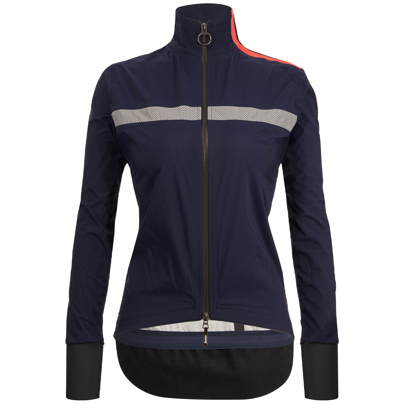 - Insérer un tissu percé réfléchissant sur la poitrine et le dos. Refraction du logo Santini sur l'épaule et le panneau arrière.