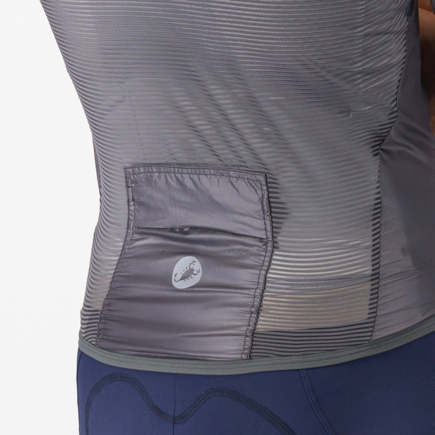 - Flancs et dos en maille élastique à rayures pour éviter que le tissu ne flotte.