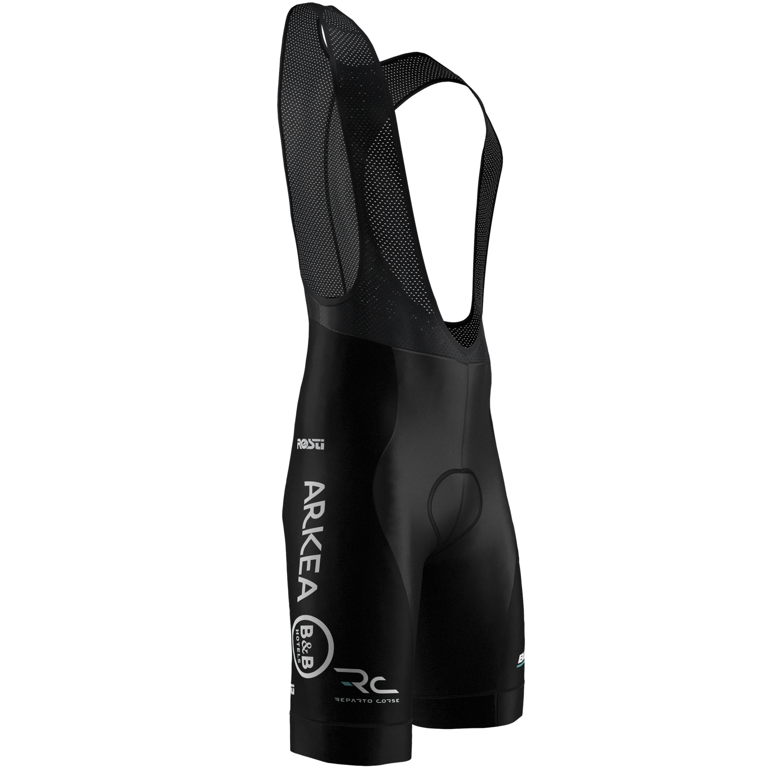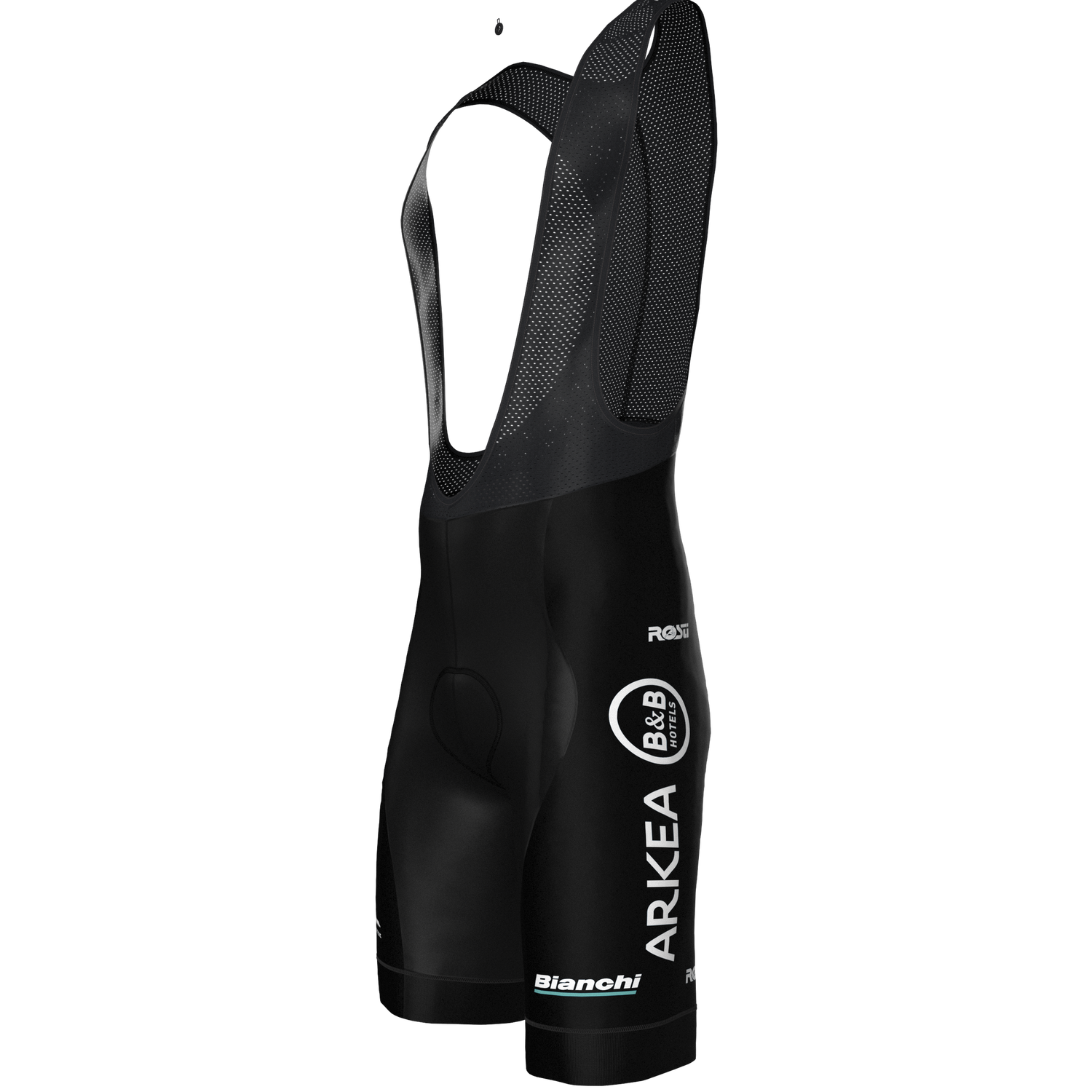 Cuissard à bretelles Équipe Rosti Arkea-B&B Hotels 2025, shorts de cyclisme d'été conçus pour offrir respirabilité et confort ergonomique. Fabriqués avec un tissu haute densité qui améliore la structure, ils présentent une coupe à vif sans coutures avec silicone à l'intérieur de la partie inférieure de la jambe. Les bretelles, à la coupe élégante et bicolore, intègrent deux poches pour plus de praticité. Le rembourrage Sky, créé avec la technique Skiving, garantit le confort même sur de longues distances..