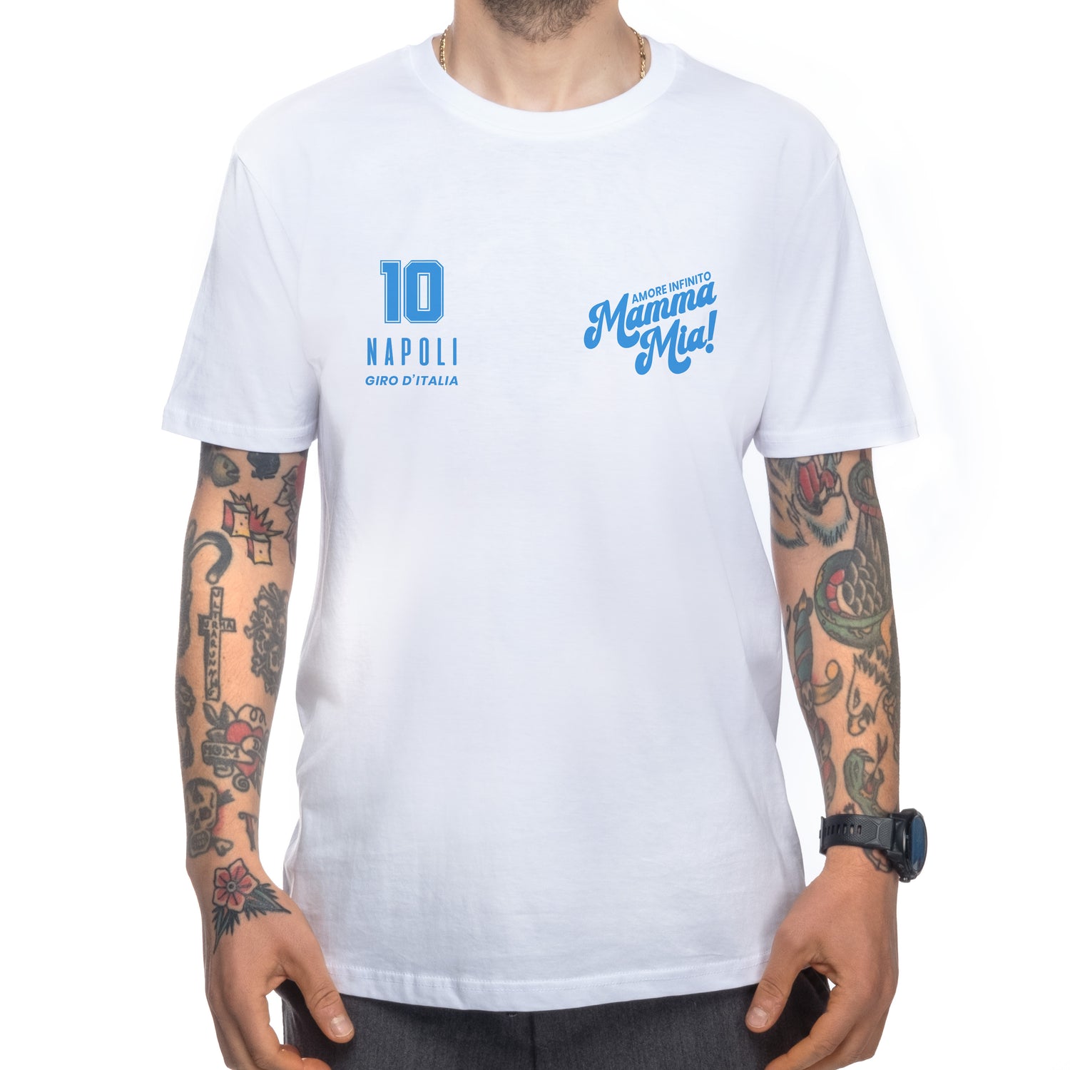 Un hommage à l'une des étapes les plus spectaculaires et iconiques du Giro d’Italia : la T-shirt Napoli Giro d’Italia célèbre la rencontre entre la Corsa Rosa et une ville unique au monde, où passion, culture et soutien se fondent dans une expérience inoubliable.