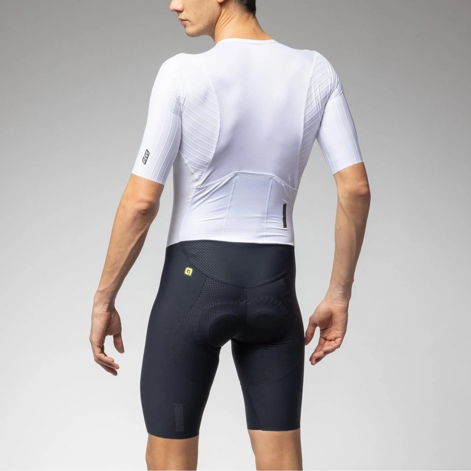 - Maniche e spalle: JET STRIPES Struttura tridimensionale con canaline che crea micro-turbolenze controllate per ridurre la resistenza nei punti critici.
