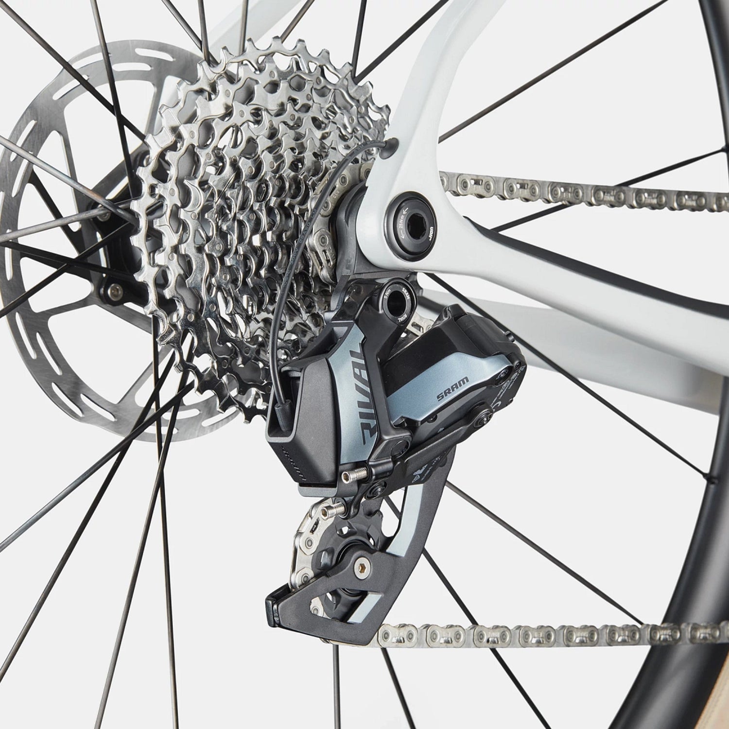 - Deragliatore: SRAM Rival AXS, braze-on.