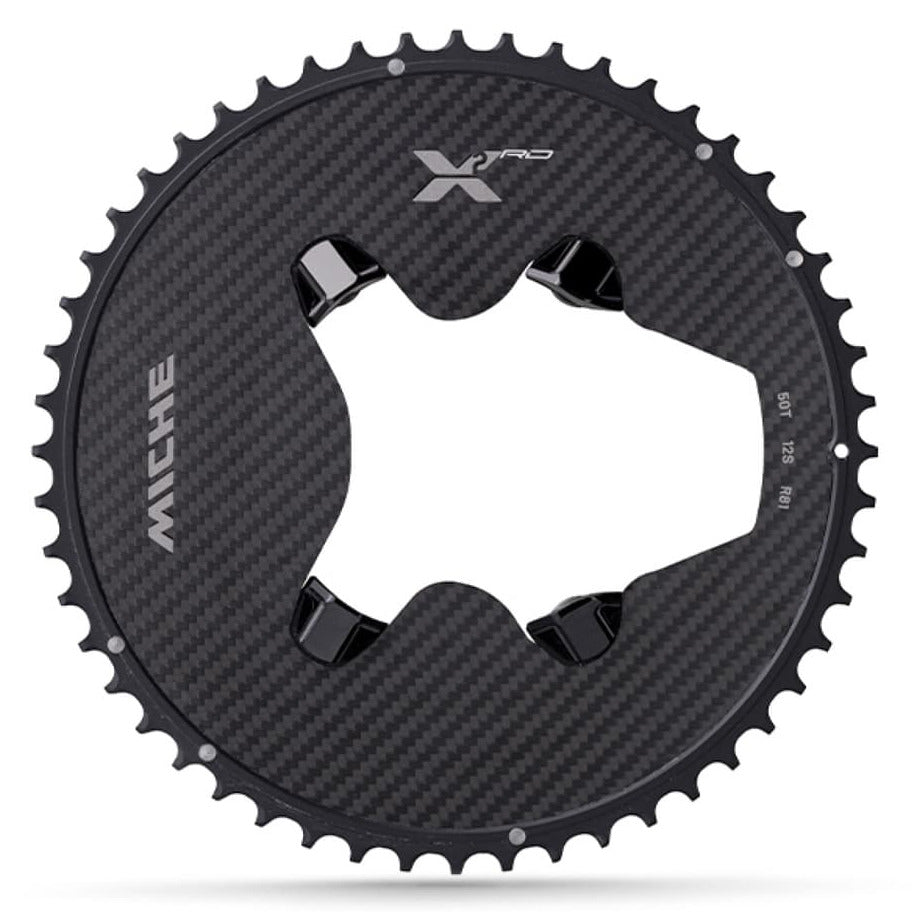 La corona Miche X2 R81 rappresenta la soluzione ideale per chi ricerca massima efficienza nella trasmissione della potenza pedalata. Progettata specificamente per le guarniture Shimano Ultegra R8100, questa corona da 52 denti con BCD 110mm garantisce un trasferimento di potenza preciso e reattivo. La combinazione di materiali innovativi – alluminio AL 7075-T6 lavorato a CNC e carbonio 3K strutturale – crea una struttura che unisce leggerezza estrema e rigidità senza compromessi. Ogni dettaglio costruttivo è stato ottimizzato per offrire prestazioni impeccabili, sia che utilizzi un power meter integrato sia con configurazioni standard. La compatibilità con ingranaggi interni Miche R12 e componenti Shimano originali consente setup versatili adatti a diverse esigenze di pedalata.