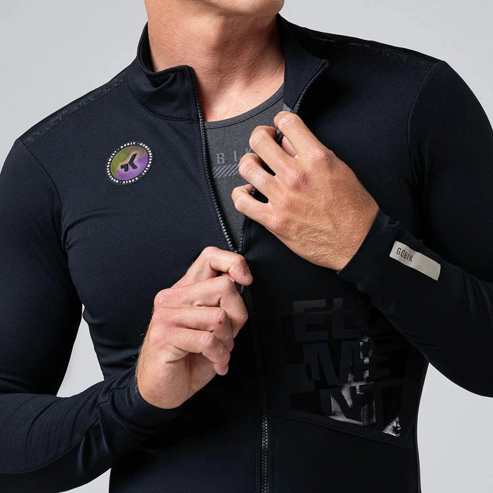 La giacca Gobik Element Ink supera tutte le aspettative di una giacca da ciclismo leggera. Scoprite una combinazione di tessuti strategicamente selezionati per il massimo comfort e la massima traspirabilità. Le aree più esposte utilizzano il nuovo Polartec® Power Shield™ Pro, un'innovativa membrana impermeabile e traspirante priva di PFAS e a base vegetale. Le zone inferiori e la schiena utilizzano un tessuto in poliammide ultra-stretch, che moltiplica il comfort di camminata e riduce il peso.
