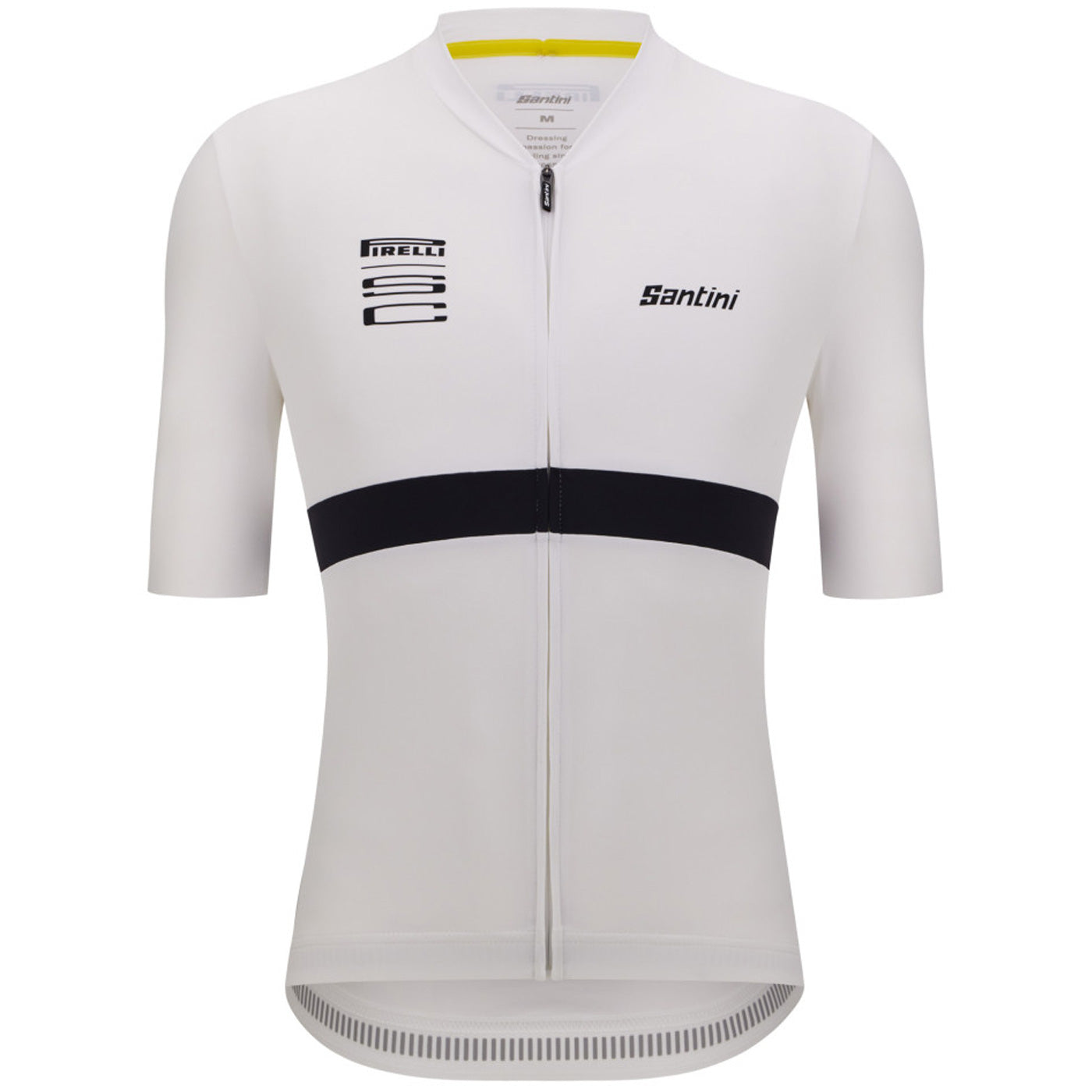 Maglia Santini x PIRELLI è una maglia a maniche corte, pulita ed elegante, con i classici colori di Pirelli. L’inserto cucito intorno il corpo e all’interno del colletto riprende il motivo della striscia gialla delle gomme Pirelli. Realizzata con un tessuto elasticizzato estremamente leggero, che consente un comfort impareggiabile e una perfetta vestibilità slim.