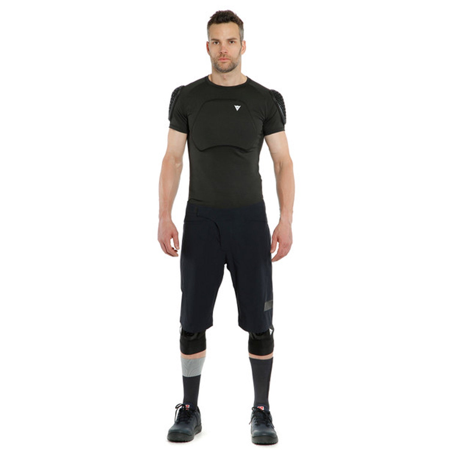 Protezione Dainese Trail Skins Pro Tee rappresenta il perfetto equilibrio fra pedalabilità e protezione, per affrontare ogni disciplina con la massima libertà di movimento e i più alti standard di sicurezza internazionali. La scelta ideale per i rider che intendono affrontare lunghi tratti sia in discesa che in salita durante l’uscita. Trail Skins Pro Tee è la protezione per il torso più versatile della gamma Dainese. I protettori morbidi removibili Pro-Shape 2.0 coprono spalle, schiena e torace, seguendo i movimenti del rider in ogni fase dell’attività. La costruzione dei protettori Pro-Shape 2.0 è ispirata alle geometrie dei materiali auxetici presenti in natura che, a seguito di un impatto o una sollecitazione, si espandono contemporaneamente in tutte le direzioni, aumentando l’area di copertura. La loro struttura aperta per il 55% dell’area di copertura, insieme al tessuto in materiale altamente traspirante, assicurano leggerezza e ventilazione superiori in ogni fase dell’uscita, anche durante le giornate più calde. La lunghezza della tee è studiata per essere vestita dentro i pantaloni, garantendo una stabilità aggiuntiva. I protettori Pro-Shape possono essere rimossi con semplicità, lasciando la libertà di scegliere quali indossare. Una versatilità perfetta in caso si voglia indossare uno zaino, che aggiunge una grande facilità di lavaggio. Due tasche posteriori, studiate per essere raggiunte facilmente anche in fase di pedalata, la rendono ancora più pratica, permettendo di portare con sé l’essenziale, senza ingombri eccessivi.