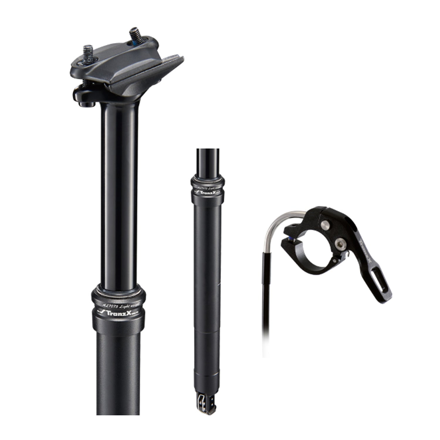 Reggisella telescopico TranzX, azionabile tramite cavo interno e leva al manubrio.