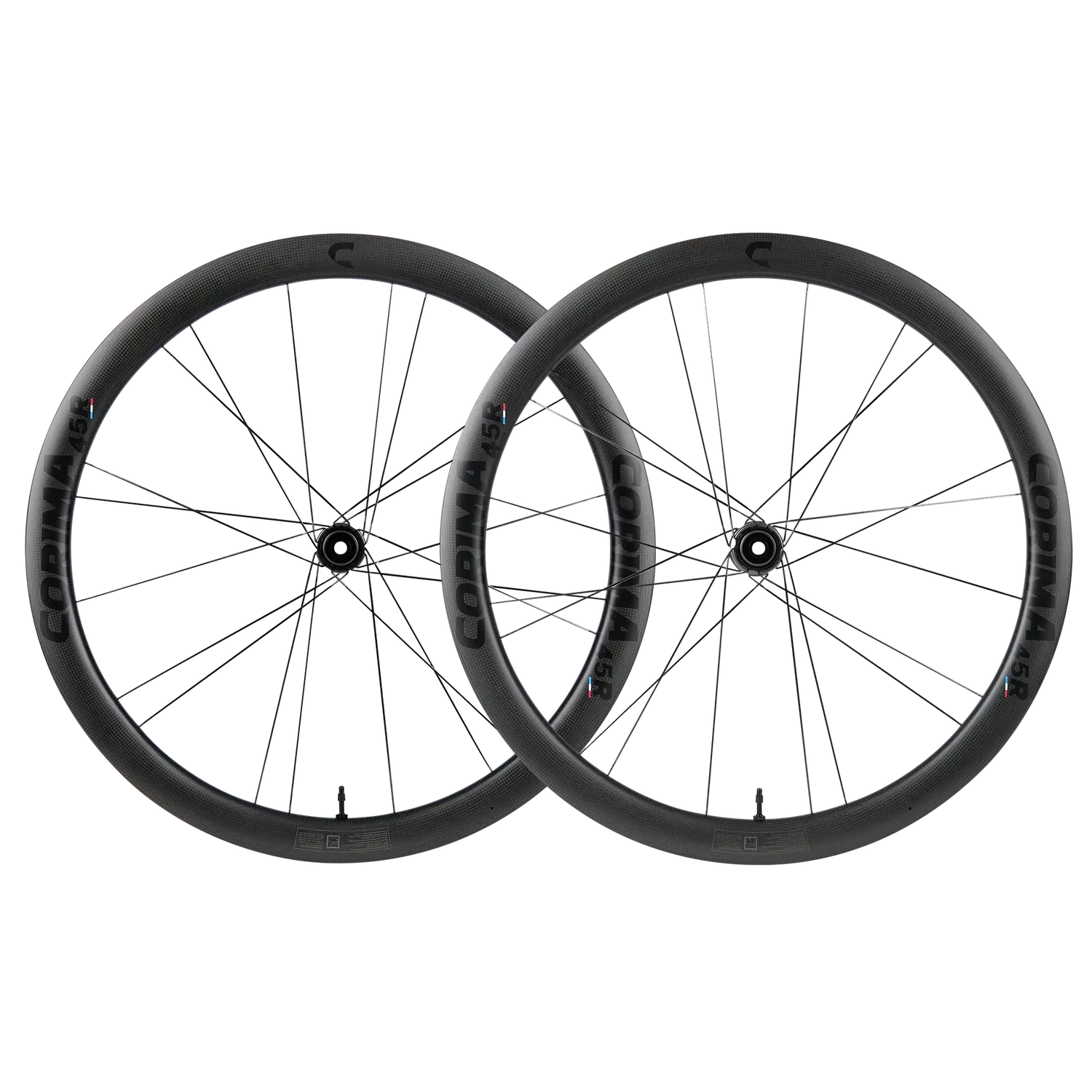 Le ruote in carbonio Corima 45R vi stupiranno per la loro versatilità, sia su strade pianeggianti che in salita. Perfette per i ciclisti grintosi che cercano prestazioni, uniscono potenza ed efficienza. Grazie alla loro aerodinamica e leggerezza, sono veloci. Progettate per attaccare, sono pronte a vincere tutto! Le nostre nuove ruote tubeless 45R in versione TC (tubeless hook) presentano una larghezza interna di 22 mm e una larghezza esterna di 30 mm, consentendo pneumatici da 25 a 34 mm. Ottimizzate per pneumatici da 28 a 30 mm, garantiscono prestazioni e stabilità senza pari. Queste ruote con freno a disco sono allacciate con raggi SAPIM neri e montate con mozzi CORIMA grigio antracite (mozzi con cricchetti). Le ruote 45R hanno un design elegante ed estetico, con la finitura del cerchio realizzata in vernice opaca che rivela le fibre di carbonio 3K e le decalcomanie nere opache sono posizionate sotto la vernice.