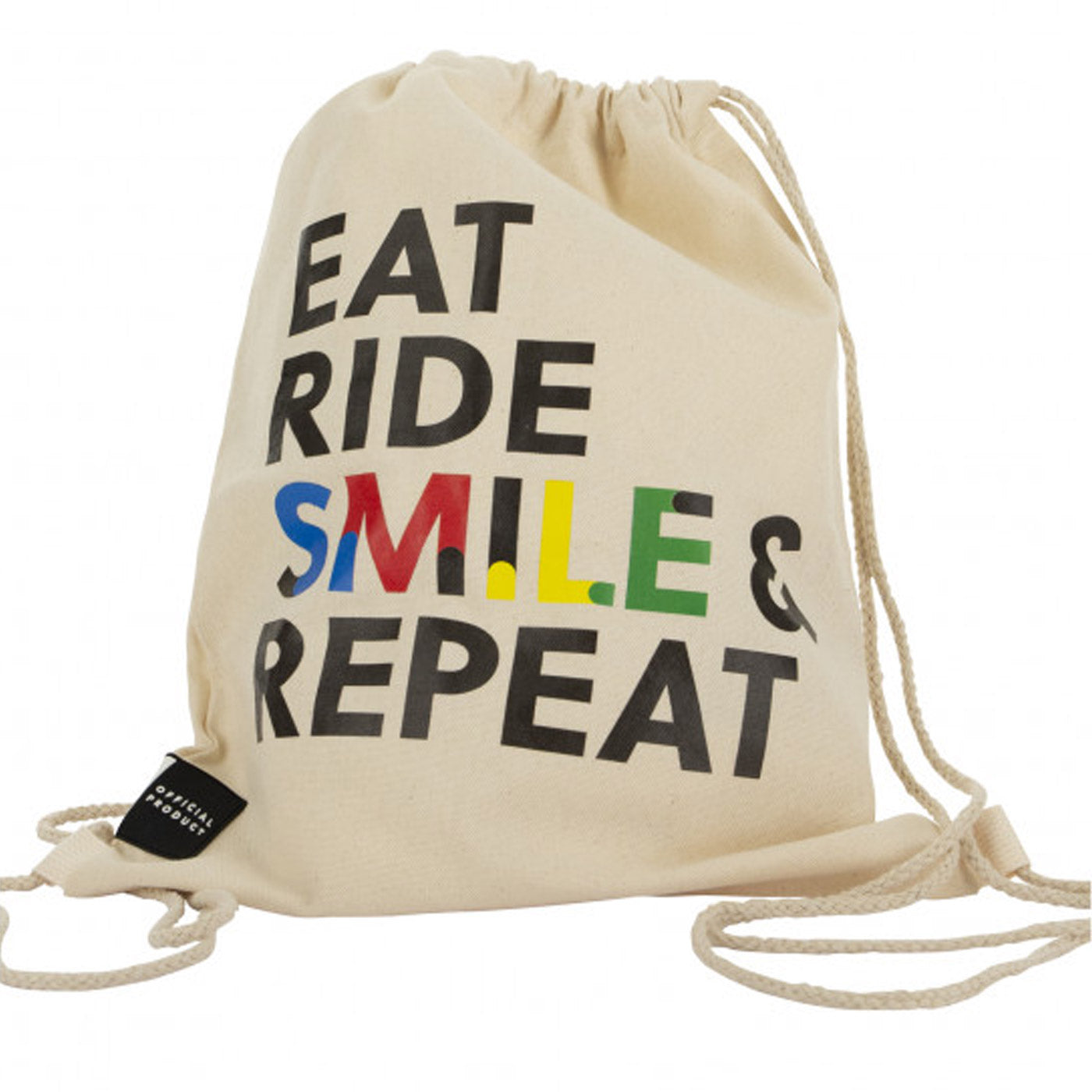 La Sacca cotone UCI Official ha una grafica iride ispirata ai Mondiali UCI, "eat, Ride & Smile, Repeat" design. Realizzata in cotone con chisura a coulisse, ideale da portare con te sia in bici che in altre occasioni.