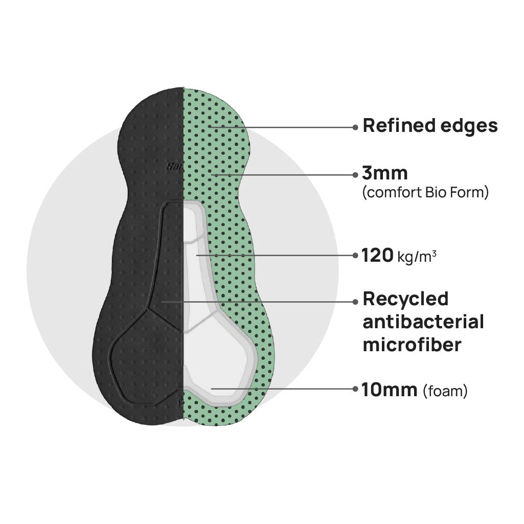 - Fondello Foam Bio che assorbe costantemente gli urti in modo graduale, per il massimo comfort nelle lunghe pedalate.